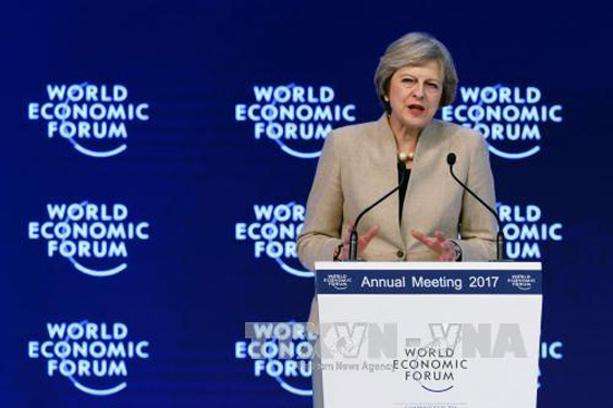 Thủ tướng Anh Theresa May phát biểu tại Diễn đàn Kinh thế thế giới (WEF) ở Davos, Thụy Sĩ ngày 19/1. Ảnh: AFP/TTXVN |