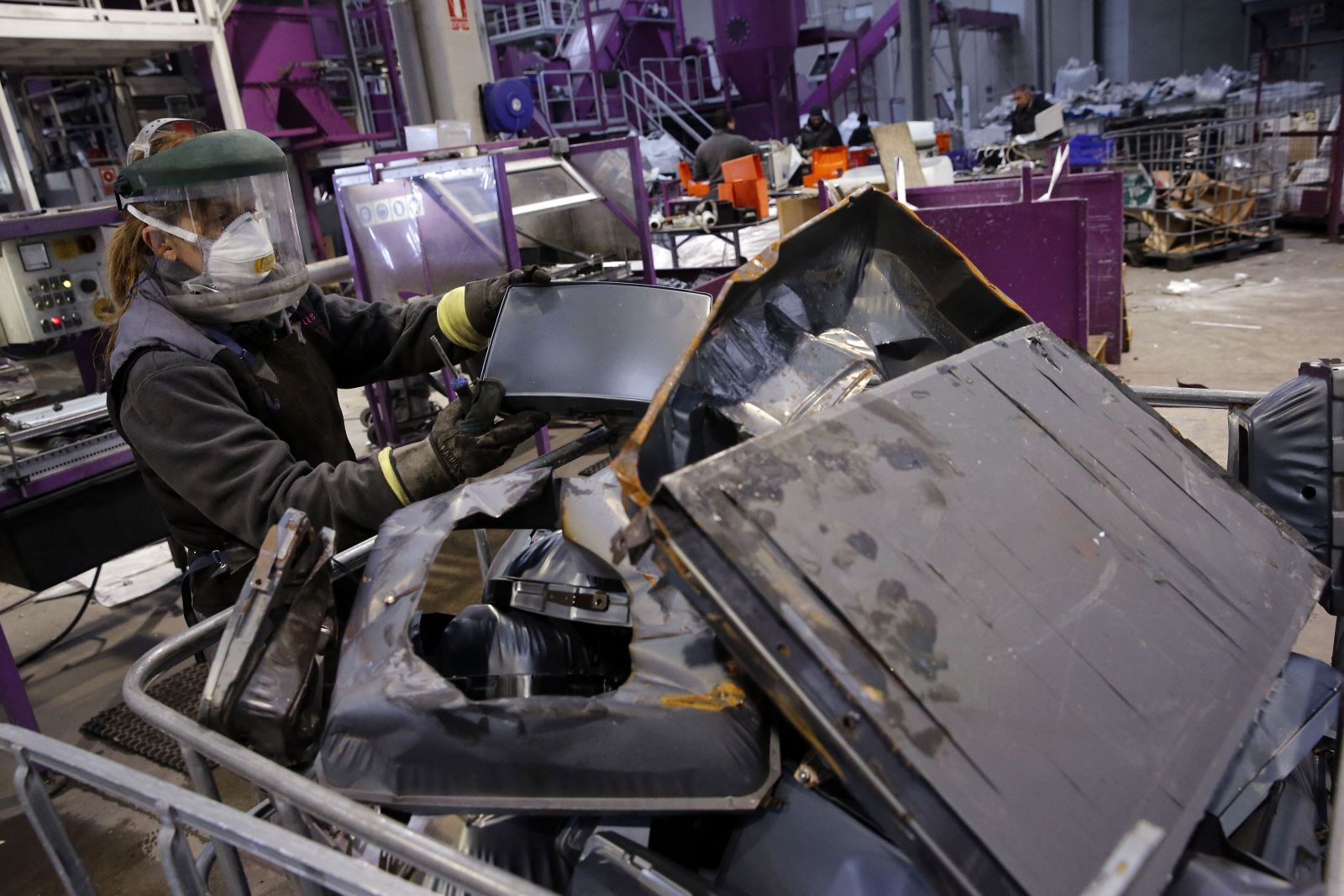 Công nhân xử lý rác thải điện tử tại một nhà máy ở Osorno, miền bắc Tây Ban Nha. Ảnh: AFP/ TTXVN