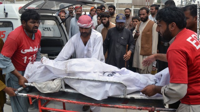 Rạng sáng nay, 7/8 đã xảy ra một vụ nổ tại sân bóng đá ở thành phố cảng Karachi, miền Nam Pakistan, làm ít nhất 11 trẻ em thiệt mạng và 24 người bị thương.Nạn nhân bị tấn công bởi phiến quân tại Quetta, Pakistan ngày 6/8. Ảnh: Internet. |