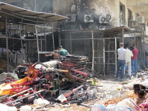Hiện trường một vụ đánh bom tại quận Sadr City, thủ đô Baghdad, Iraq. Ảnh: THX/TTXVN |