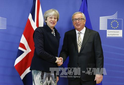 Thủ tướng Anh Theresa May (trái) và Chủ tịch Ủy ban châu Âu Jean-Claude Juncker trong cuộc gặp tại Brussels, Bỉ ngày 4/12/2017. Ảnh: THX/TTXVN |