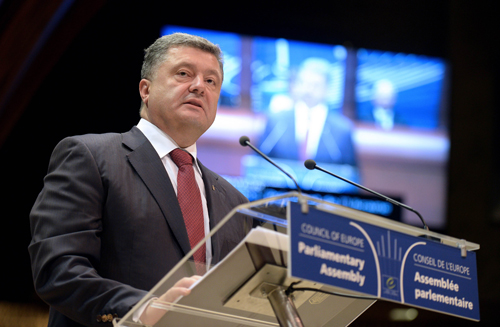 Tổng thống Petro Poroshenko phát biểu tại phiên họp Hội đồng Nghị viện châu Âu ở Strasbourg, Pháp ngày 26/6. Ảnh: AFP/TTXVN |