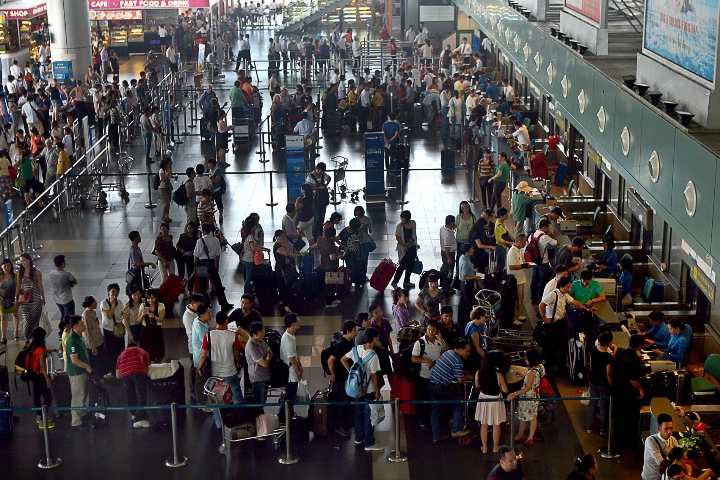 Hành khách làm thủ tục trước chuyến bay tại Cảng Hàng không Quốc tế Nội Bài. Ảnh: Huy Hùng – TTXVN