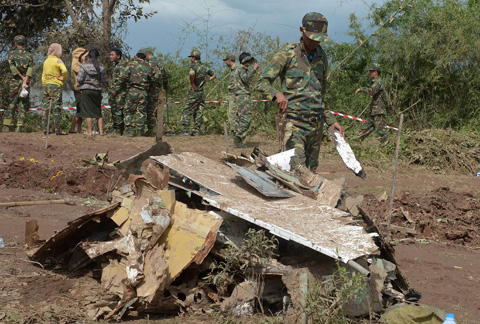 Binh sĩ Lào xem xét hiện trường vụ tai nạn. Ảnh: AFP/ TTXVN