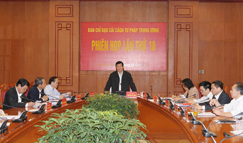 Chủ tịch nước Trương Tấn Sang chủ trì Phiên họp lần thứ 10 của Ban Chỉ đạo Cải cách tư pháp Trung ương. Ảnh: Nguyễn Khang - TTXVN |