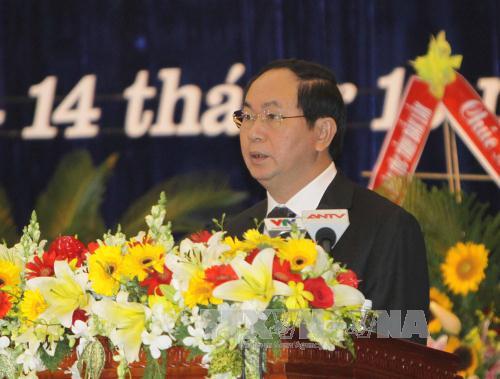 Đồng chí Trần Đại Quang phát biểu tại Đại hội, sáng 13/10. Ảnh: Dương Giang - TTXVN |