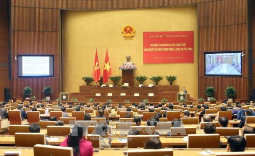 Hội nghị đã được nghe đồng chí Phạm Minh Chính, Ủy viên Bộ Chính trị, Bí thư Trung ương Đảng, Trưởng ban Tổ chức Trung ương giới thiệu, quán triệt Nghị quyết số 18-NQ/TW “Một số vấn đề về tiếp tục đổi mới, sắp xếp tổ chức bộ máy của hệ thống chính trị tinh gọn, hoạt động hiệu lực, hiệu quả”. Đồng chí Vương Đình Huệ, Ủy viên Bộ Chính trị, Phó Thủ tướng Chính phủ giới thiệu, quán triệt Nghị quyết số 19-NQ/TW “Về tiếp tục đổi mới hệ thống tổ chức và quản lý, nâng cao chất lượng và hiệu quả hoạt động của các đơn vị sự nghiệp công lập”. Đồng chí Vũ Đức Đam, Ủy viên Trung ương Đảng, Phó Thủ tướng Chính phủ giới thiệu, quán triệt Nghị quyết số 20-NQ/TW “Về tăng cường công tác bảo vệ, chăm sóc và nâng cao sức khỏe nhân dân trong tình hình mới” và Nghị quyết số 21-NQ/TW “về công tác dân số trong tình hình mới”.