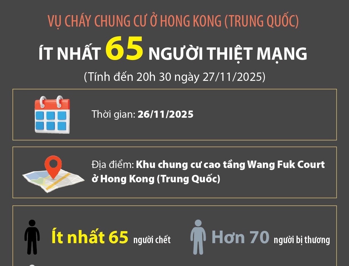 Tính đến 20h30 ngày 27/11/2025, vụ cháy chung cư tại quận Tai Po (Hong Kong, Trung Quốc) đã cướp đi sinh mạng của 65 người, trong khi gần 300 người còn mất tích. (đọc thêm)