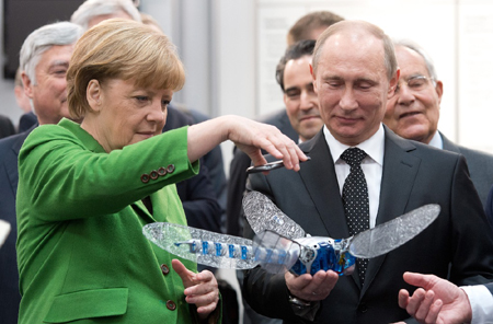 Thủ tướng Đức Angela Merkel và Tổng thống Nga Vladimir Putin trong một cuộc gặp chung vào năm 2013. |