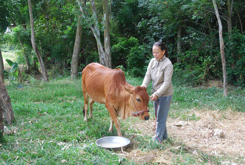 Con bò mua từ vốn vay chương trình hộ cận nghèo là tài sản có giá trị lớn nhất của gia đình chị Hồ Thị Anh. |