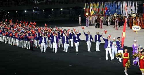 Đoàn Việt Nam diễu hành tại Lễ khai mạc. Ảnh: Quang Nhựt - TTXVN |