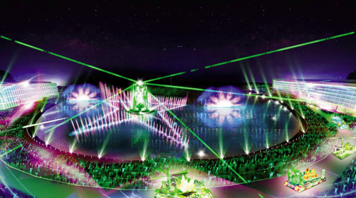 Thiết kế sân khấu nước lộng lẫy đầy ấn tượng và biểu tượng ngôi sao khổng lồ tại Hồ Bán Nguyệt, Phú Mỹ Hưng, quận 7, TP Hồ Chí Minh. |