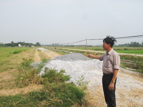 Chủ tịch UBND xã Trần Quang Vinh bên khu đất tái định cư. |