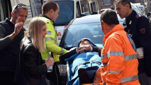 Thủ tướng Italy Matteo Renzi ngày 9/4 đã lên tiếng chỉ trích về những "sai lầm" và "sự cẩu thả" của hệ thống an ninh nước này sau khi xảy ra vụ bị can xả súng bắn chết 3 người và làm bị thương nặng 2 người khác trong phiên tòa đang xét xử đối tượng này vào sáng cùng ngày ở thành phố Milan, miền Bắc Italy. Một nạn nhân được đưa đi cấp cứu. Ảnh: foxnews |