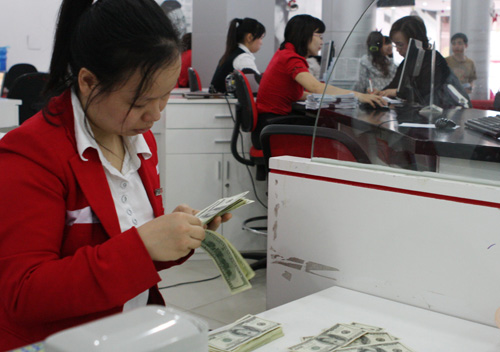 Kiểm đếm USD giao dịch tại Ngân hàng Thương mại cổ phần Hàng Hải (Maritime Bank). Ảnh: Trần Việt - TTXVN |