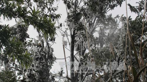 Băng tuyết phủ đặc tại khu vực Tháp Truyền hình Tam Đảo, huyện Tam Đảo có độ cao trên dưới 1.200m so với mặt nước biển, cuối tháng 1/2016. Ảnh: Nguyễn Trọng Lịch - TTXVN