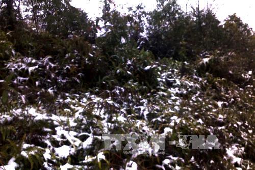 Tuyết rơi phủ trắng sườn núi xã Ma Lé, huyện Đồng Văn, tỉnh Hà Giang. Ảnh: Hoàng Ngọc - TTXVN. |