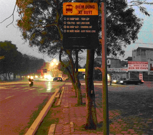 Điểm chờ xe buýt trên phố Nguyễn Hữu Thọ- Đại Kim không một bóng khách |