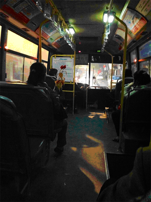 Chị Yến nói: “Tuyến xe chị đi chỉ lác đác có 5, 6 người ngồi mà giá vé chỉ có 5.000 đồng. Lần đầu tiên đi xe buýt, tôi thực sự thích thú vì chi phí quá rẻ trong thời buổi khó khăn hiện nay. Ngồi trên xe vắng khách, tôi có thể thư thái ngắm đường phố Hà Nội trong những ngày Tết cổ truyền”.