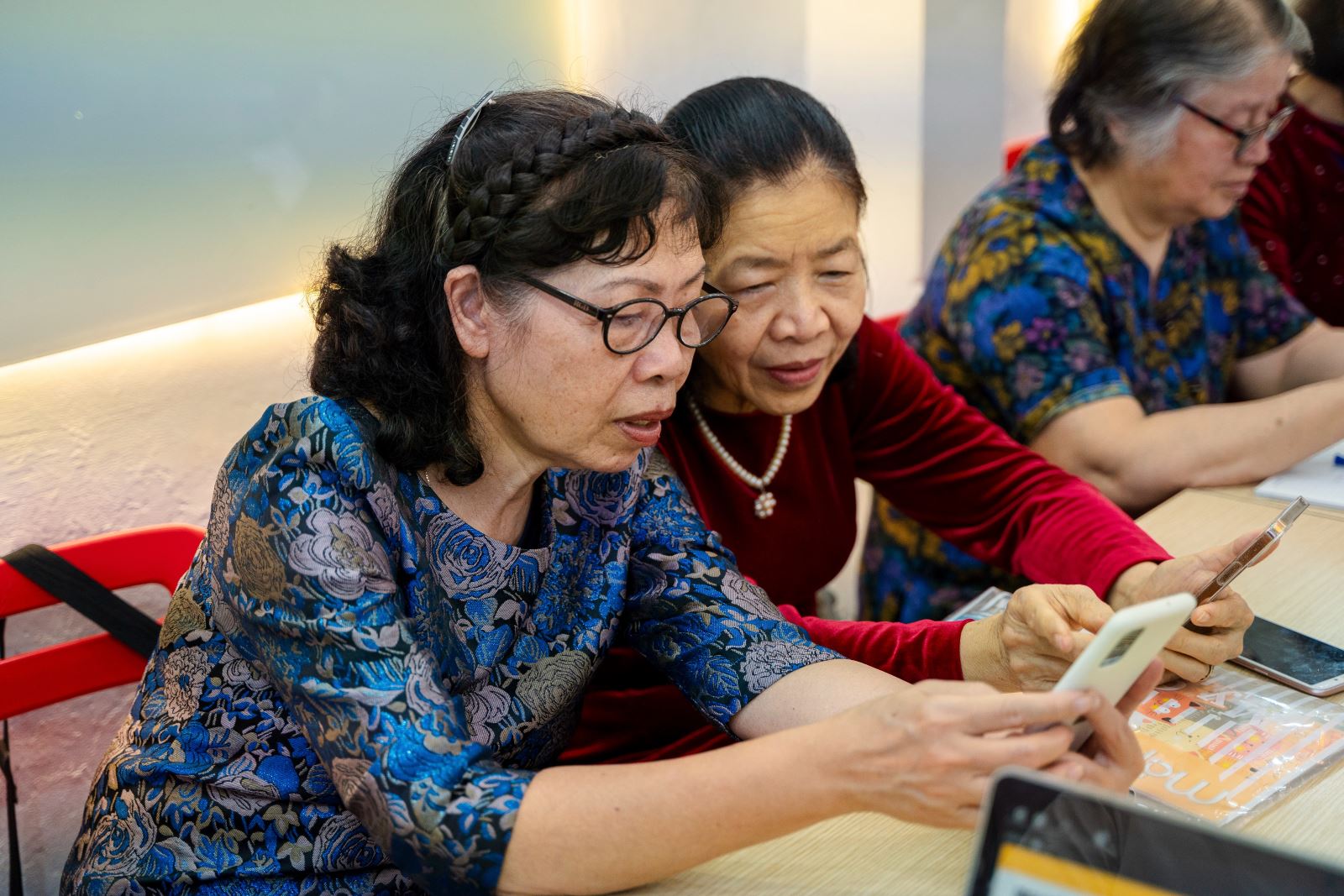 Hiểu về công nghệ, những cụ ông, cụ bà đã không còn e ngại lĩnh vực lạ lẫm này. Ảnh: NVCC