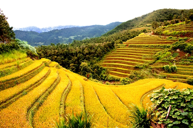 Ruộng bậc thang và tập quán canh tác lúa nước truyền thống của đồng bào miền núi Tây Bắc đã trở nên quen thuộc với nhiều người nhưng luôn là nguồn cảm hứng bất tận với các văn nghệ sĩ khi đến với cảnh sắc và con người nơi đây. Tuy nhiên, các bức ảnh của các nhà nhiếp ảnh Nguyễn Mạnh Phúc, Vũ Mạnh Cường, Nguyễn Đắc Phượng, Nguyễn Anh Tuấn, Nguyễn Thế Bằng, Ngô Chí Thành tại triển lãm lần này vẫn mang một màu sắc riêng. Những “hoa văn núi”-ruộng bậc thang- của đồng bào miền núi Tây Bắc một lần nữa lại đến với Hà Nội, làm ấm lên những ngày đông.