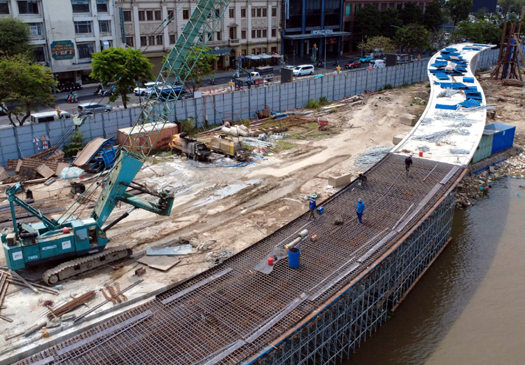 Sau hơn một năm triển khai thi công, dự án cầu đi bộ qua sông Sài Gòn, nối khu trung tâm Thành phố với Khu đô thị Thủ Thiêm (TP Hồ Chí Minh) đang từng bước hoàn thiện các hạng mục quan trọng.(đọc thêm)