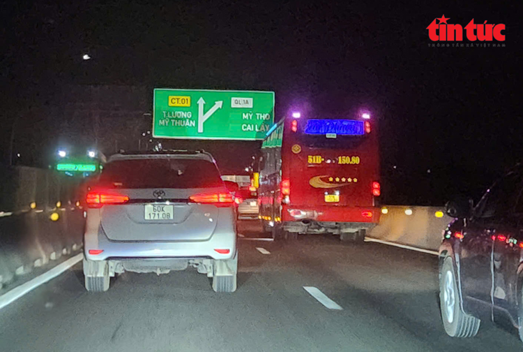 Giao thông ùn tắc kéo dài trên cao tốc Trung Lương - Mỹ Thuận