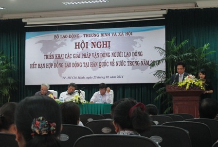 Tình trạng người lao động sau khi hết hạn hợp đồng không về nước mà ở lại làm việc, cư trú bất hợp pháp tại Hàn Quốc đã và đang làm xấu hình ảnh người lao động Việt Nam tại nước ngoài. Để hạn chế tình trạng trên, Bộ Lao động - Thương binh và Xã hội đã tổ chức hội nghị “Triển khai các giải pháp vận động người lao động hết hạn hợp đồng lao động tại Hàn Quốc trong năm 2014 về nước” cho 14 tỉnh thành phía Nam vào chiều ngày 25/2 tại Thành phố Hồ Chí Minh.