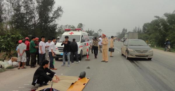 Theo nguồn tin từ Công an huyện Cẩm Xuyên: Khi chiếc xe đưa đoàn khách hỏi dâu đi từ Quảng Bình đến địa điểm trên thì dừng lại bên vệ đường, hai bà cháu khi băng qua đường do thiếu quan sát đã bị chiếc xe tải biển kiểm soát 51C- 15111 chạy theo hướng từ Bắc vào Nam đâm vào.