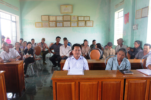 Người dân tổ chức buổi đối chất cùng ông Phan Văn Phúc tại trụ sở UBND xã Đắc Jơ Ta (huyện Mang Yang). Ảnh: laodong.com.vn