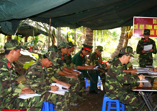 BCH Quân sự huyện Tiểu Cần diễn tập vận hành cơ chế. Ảnh: travinh.gov.vn.