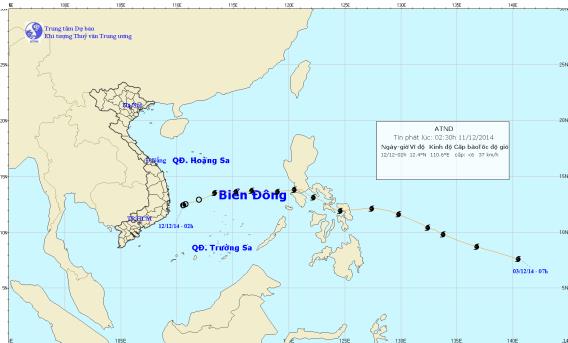 Hồi 2 giờ ngày 12/12, vị trí trung tâm vùng áp thấp ở vào khoảng 12,4 độ Vĩ Bắc; 110,6 độ Kinh Đông, trên vùng biển các tỉnh Khánh Hòa – Ninh Thuận. Sức gió mạnh nhất ở trung tâm vùng áp thấp giảm xuống dưới cấp 6 (dưới 39 km/giờ). Dự báo trong 12 giờ tới, vùng áp thấp di chuyển nhanh theo hướng Tây Tây Nam, suy yếu và tan dần.