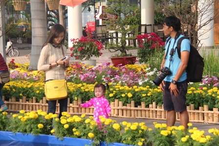 Diện quần áo đẹp cho con để chụp ảnh tại hội hoa xuân Phú Mỹ Hưng (quận 7) |