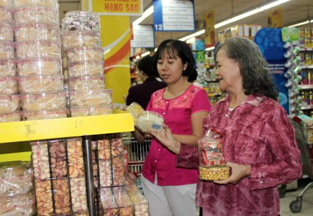 Thị trường hàng hóa ngày Tết cũng đã nhộn nhịp hẳn lên. Theo ghi nhận của phóng viên tại các siêu thị trên địa bàn thành phố, trong hai ngày trở lại đây các siêu thị luôn đông nghẹt khách đến mua sắm. Mặc dù các siêu thị đã phải tăng cường nhân sự, hoạt động hết công suất, mở hết các quầy thanh toán tiền để giải phóng nhanh cho khách ở khu vực thu ngân, tuy nhiên khách hàng vẫn phải xếp hàng dài chờ đợi.