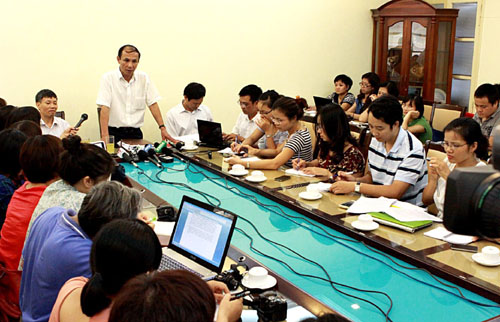 (Ảnh minh họa) - Chánh Thanh tra Sở Y tế Hà Nội Nguyễn Việt Cường phát biểu tại buổi họp báo về vụ nhân bản xét nghiệm ở Bệnh viện đa khoa Hoài Đức (ngày 16/8/2013). Ảnh: Dương Ngọc - TTXVN |
