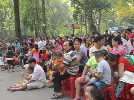 Ghi nhận của phóng viên tại khu vực Thảo cầm viên Sài Gòn, từ 8 giờ sáng cả hai cổng đều có đông người dân tập trung xếp hàng chờ mua vé vào tham quan. Bên trong, những khu vực trò chơi dân gian, khu vực vườn thú nuôi, khu vực sân khấu có chương trình văn hóa- văn nghệ… luôn tập trung đông đúc khách tham quan. Gần trưa, các bãi cỏ, gốc cây cổ thụ… có bóng mát được khá nhiều khách tham quan tận dụng làm nơi nghỉ ngơi, ăn trưa.