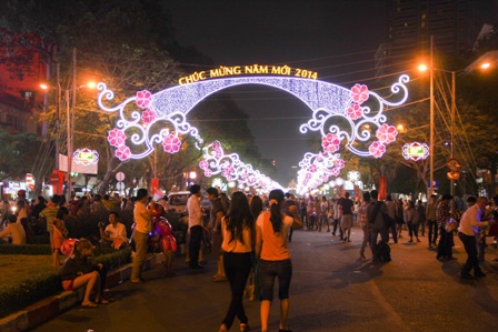 Đường phố Sài Gòn được trang trí lộng lẫy chào đón năm mới 2014. |